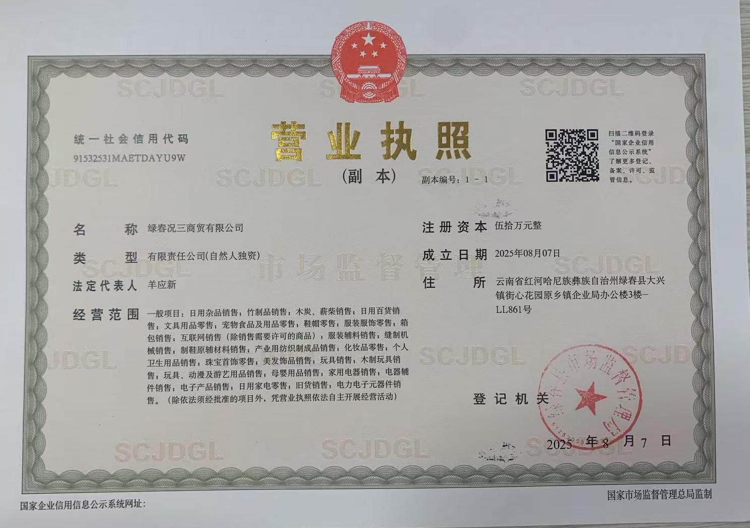 Address: LL861, 3rd Floor, Former Township Enterprise Bureau Office Building, Jiexin Garden, Daxing Town, Lvchun County, Honghe Hani and Yi Autonomous Prefecture, Yunnan Province